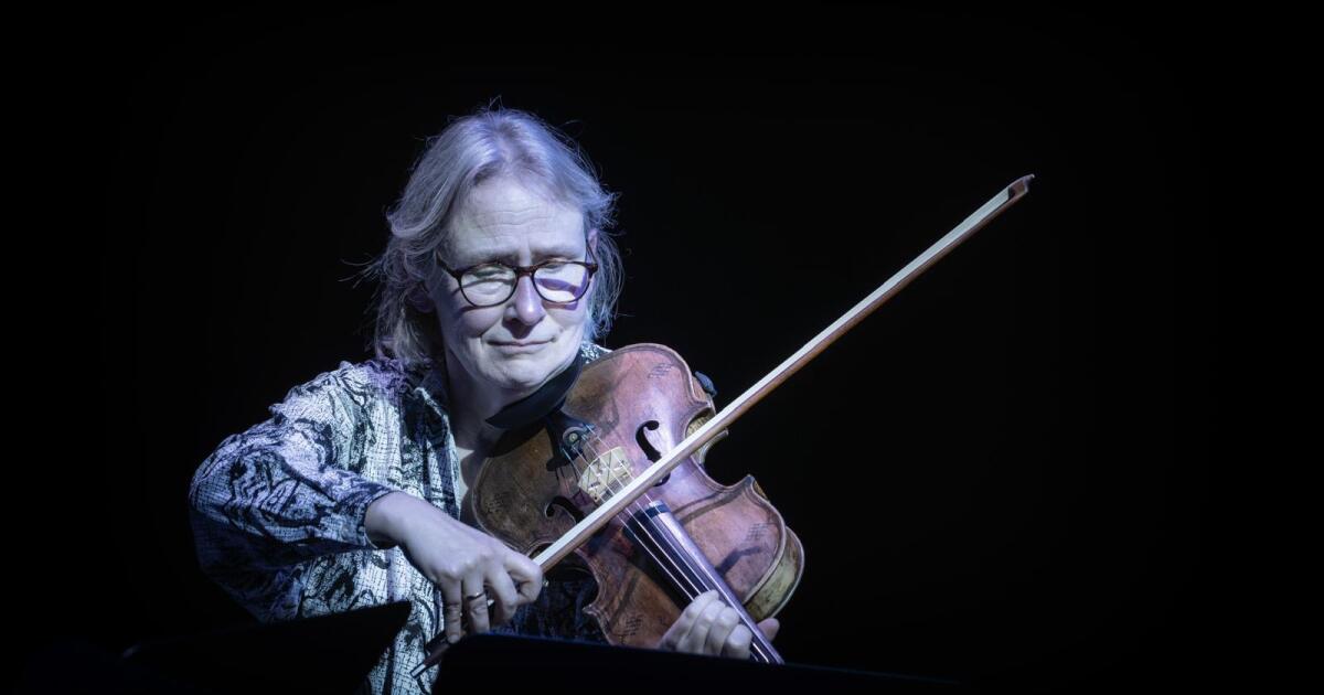 The player uses the wooden side of the bow to either drag across or strike the strings, producing a wispy and eerie sound, or very percussive effect respectively.